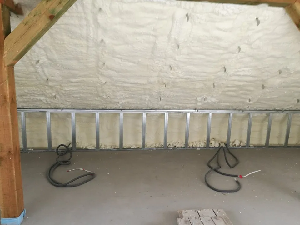 PUR-vaht kantakse avatud pinnale, kus see moodustab ühtlase ja õhukindla soojustuskihi.